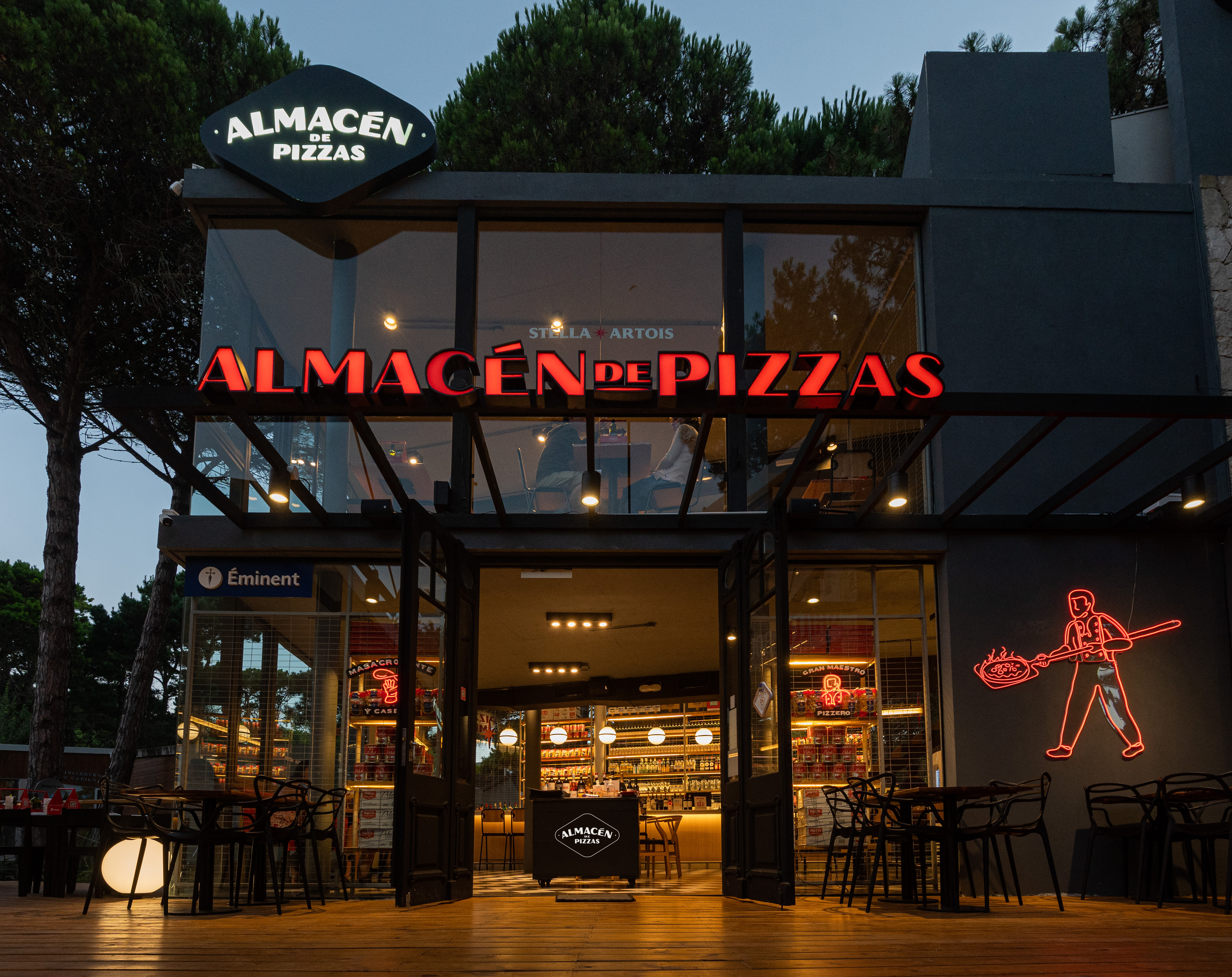 Un dia hicimos una pizza distinta, y nació Almacen de Pizzas. De herencia Italiana, de cerveza, pizza, fainá y mucho ruido; de familias y amigos encontrándose. Las mesas bien cerca, una silla extra para que entremos todos. La grande de 10 porciones para que nunca falte. Una muzzarella estacionada en su punto justo. La mano de nuestros almaceneros, los maestros pizzeros. Un amasado intenso, y un descanso en la mesada, se va al fuego de nuestro horno de barro. Sale crocante como te gusta. Creemos en los ingredientes nobles, en las buenas pizzas y en los buenos encuentros. Porque hay cosas que no cambian, pero hay otras que siguen mejorando.